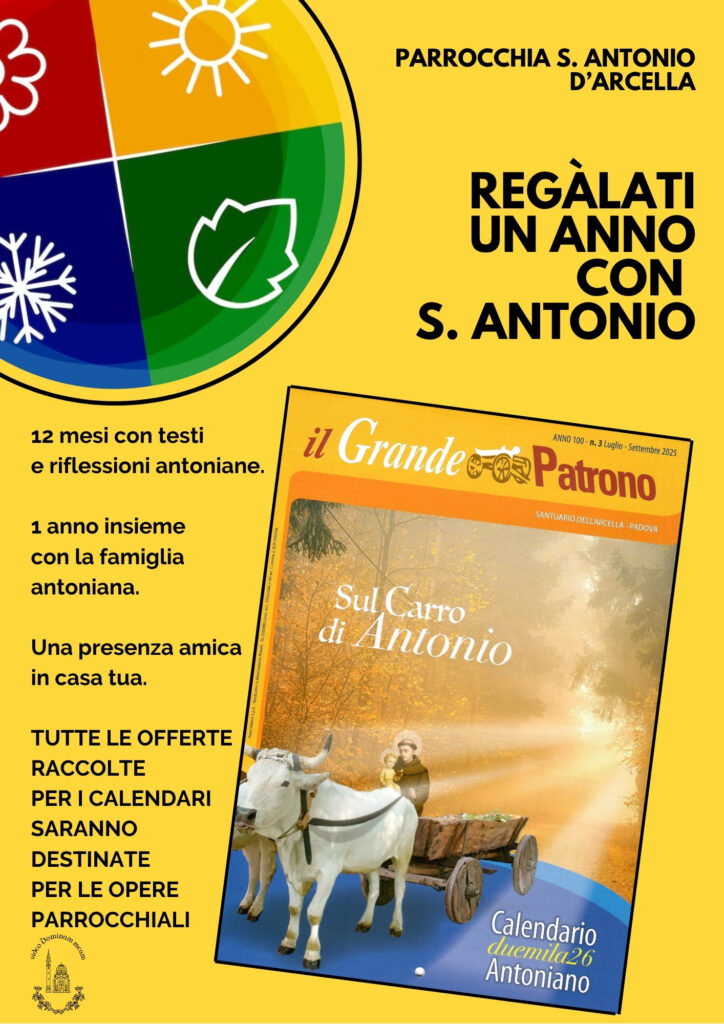Sono a disposizione in Chiesa molte copie del Calendario 2026 “Il Grande Patrono”, dedicato quest’anno all’ultimo viaggio di s.Antonio sul suo carro…
