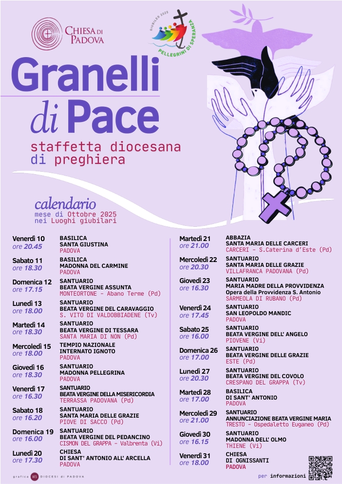 Anche la nostra Parrocchia partecipa all’iniziativa Diocesana “Granelli di Pace”, staffetta di preghiera per l Pace, preghiera del Santo Rosario.